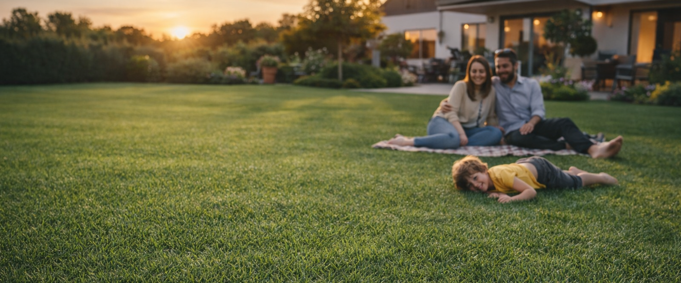 Mit unserem Premium-Rollrasen schaffen Sie in kürzester Zeit eine dichte, gleichmäßige Grünfläche